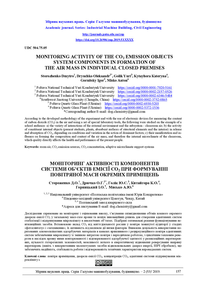 2020/07/16Monitoring activity of the CO2 emission objects system components in formation of the air mass in individual closed premises