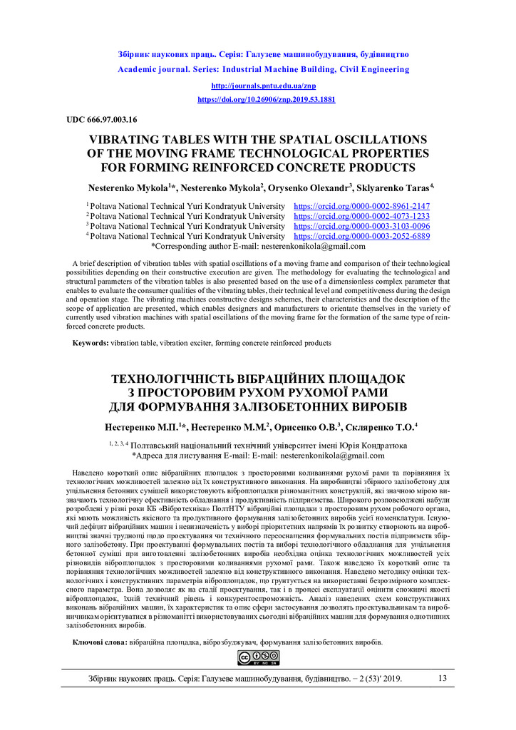 2020/08/02Vibrating tables with the spatial oscillations of the moving frame technological properties for forming reinforced concrete products