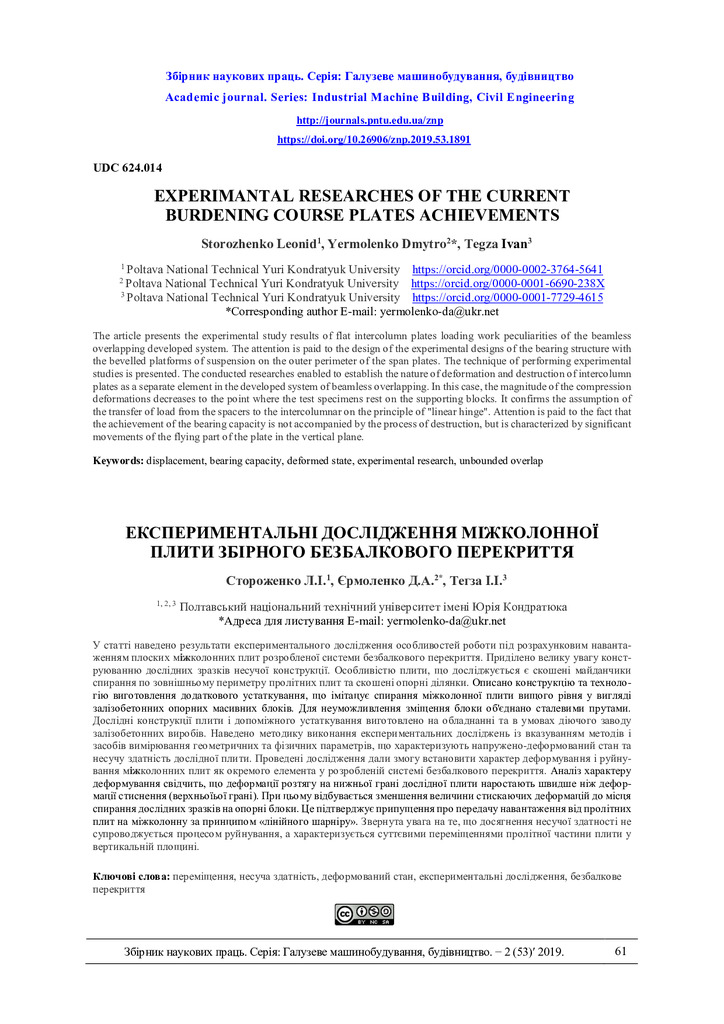 ЗНП. Серія: Галузеве машинобудування, будівницво. 2019. № 2 (53)