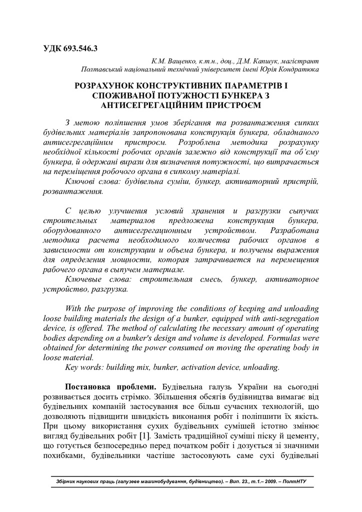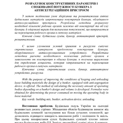 2020/07/17Розрахунок конструктивних параметрів і споживаної потужності бункера з антисегрегаційним пристроєм