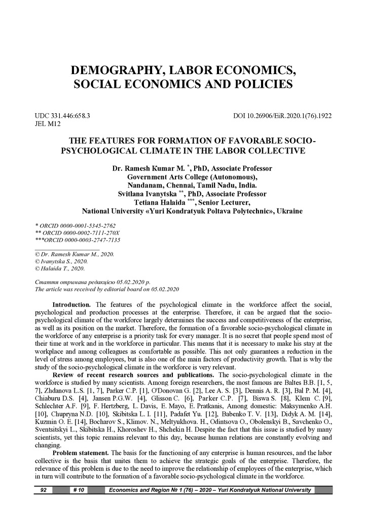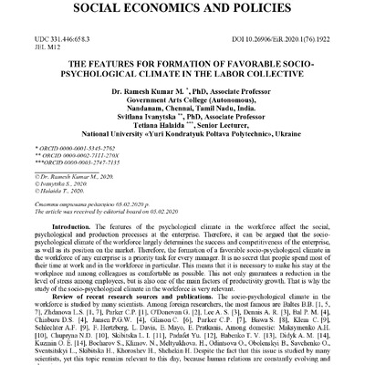 2020/09/23The features for formation of favorable socio-psychological climate in the labor collective