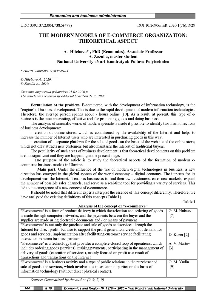 2020/09/23The modern models of e-commerce organization: theoretical aspect