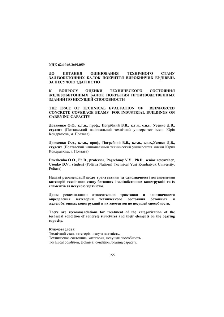 Надані рекомендації щодо трактування та однозначності встановлення категорій технічного стану бетонних і залізобетонних конструкцій та їх елементів за несучою здатністю.