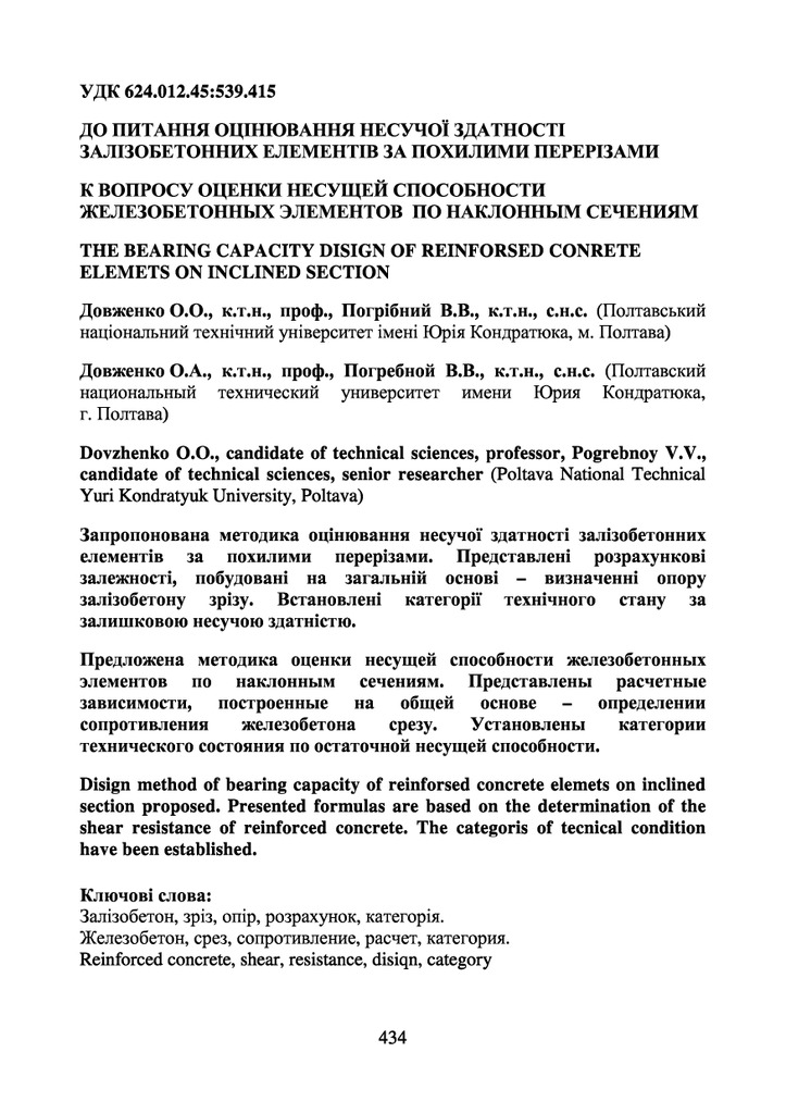 Запропонована методика оцінювання несучої здатності залізобетонних елементів за похилими переріза...