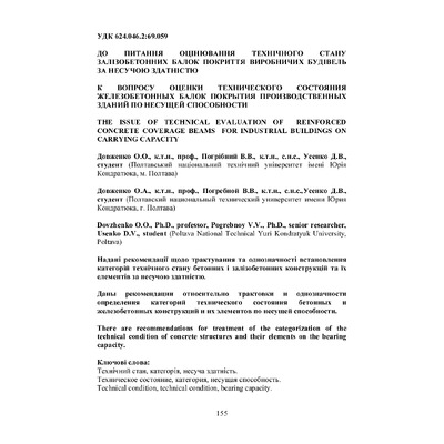 2020/07/01До питання оцінювання технічного стану залізобетонних балок покриття виробничих будівель за несучою здатністю