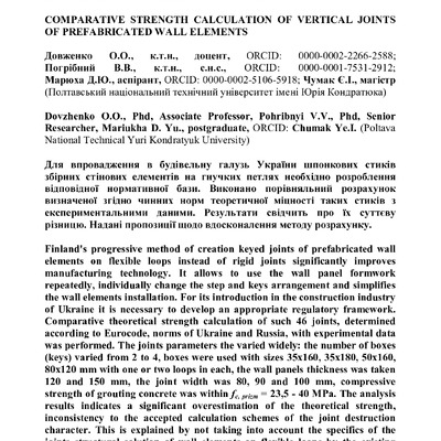 2020/07/03Порівняльний розрахунок міцності вертикальних стиків збірних стінових елементів