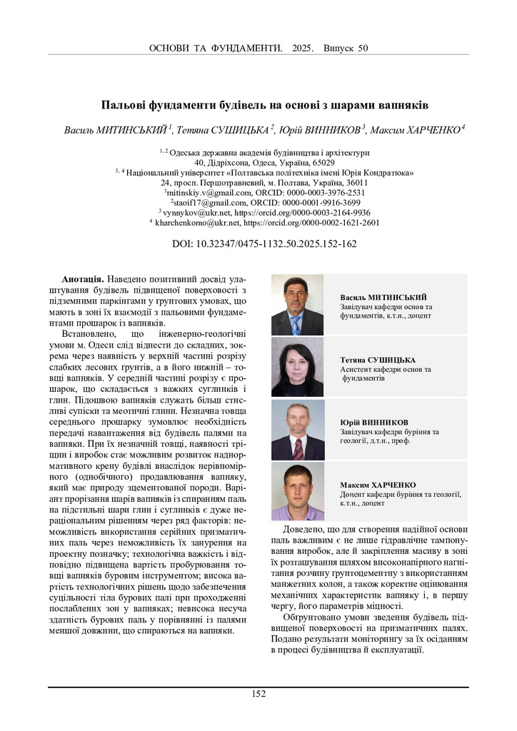 2025/09/15Пальові фундаменти будівель на основі з шарами вапняків