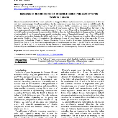 Research on the prospects for obtaining iodine from carbohydratefields in Ukraine