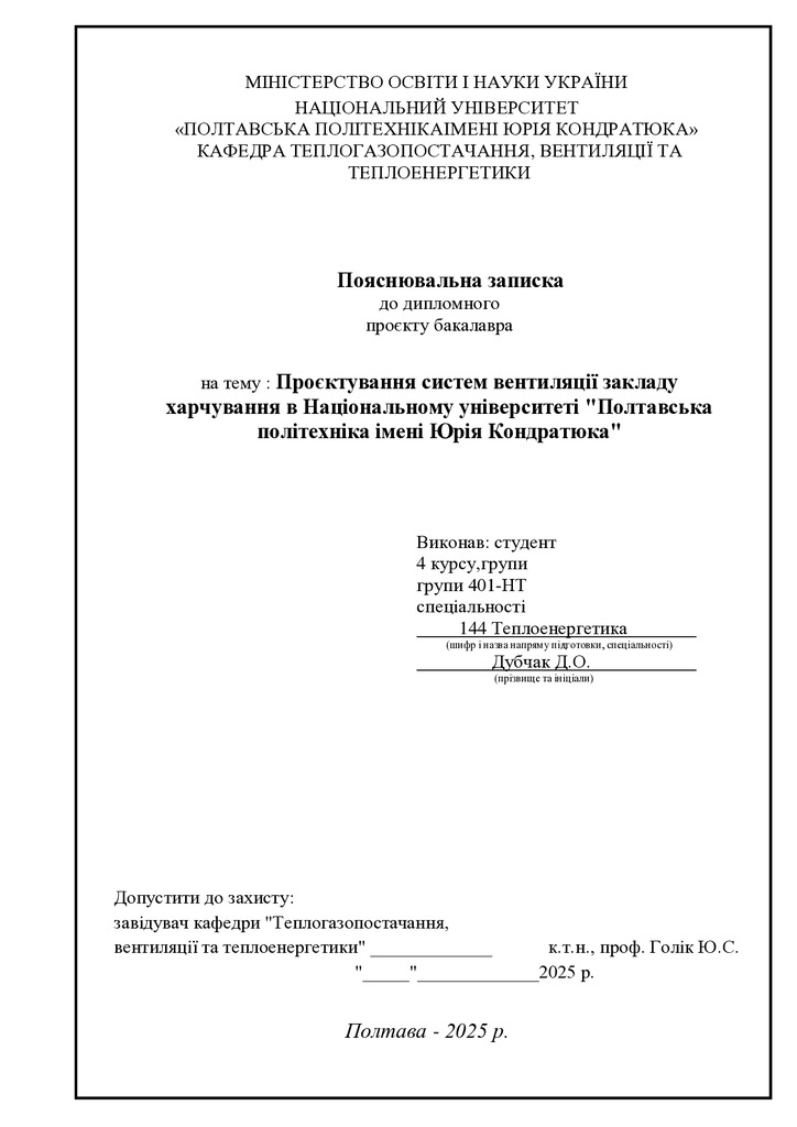 2025/08/26Проєктування систем вентиляції закладу харчування в Національному університеті "Полтавська політехніка імені Юрія Кондратюка"