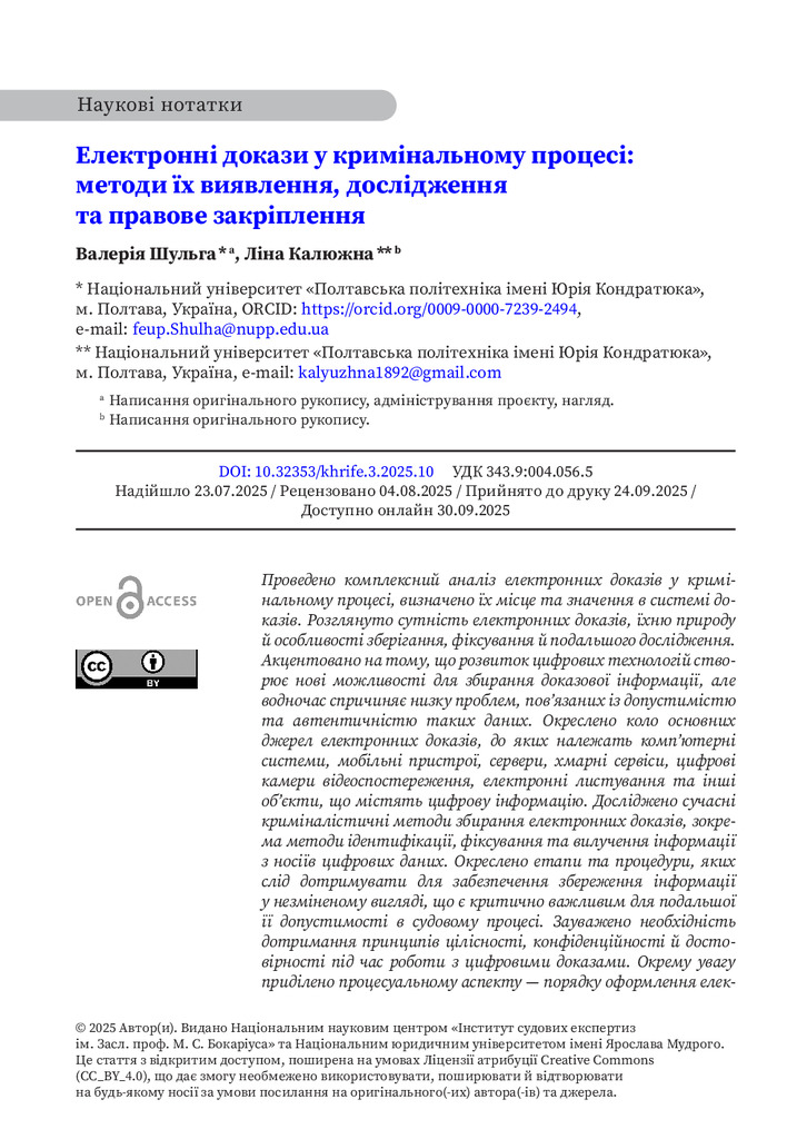 2025/12/02Електронні докази у кримінальному процесі: методи їх виявлення, дослідження та правове закріплення