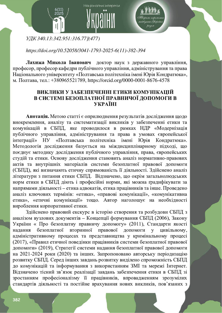 Виклики у забезпеченні етики комунікацій в системі безоплатної правничої допомоги в Україні