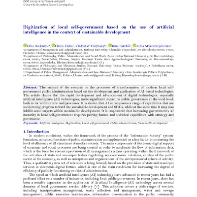 Digitization of local self-government based on the use of artificial intelligence in the context of sustainable development - Цифровізація місцевого самоврядування на основі використання штучного інтелекту в контексті сталого розвитку