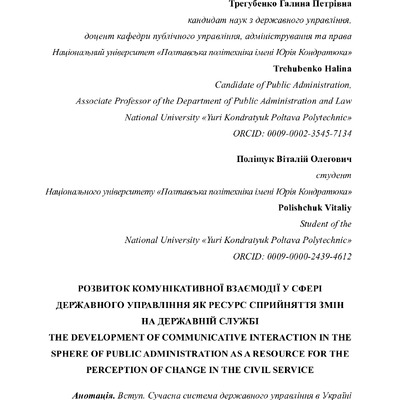 Розвиток комунікативної взаємодії у сфері державного управління як ресурс сприйняття змін на державній службі