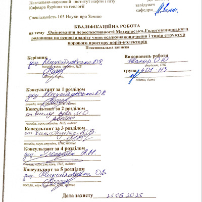 2025/07/11Аналіз фізико-хімічних та механічних властивостей порід геологічного розрізу Західно-Хрестищенського газоконденсатного родовища