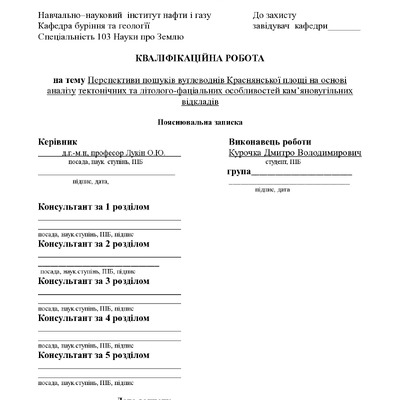 Робота присвячена пошуку вуглеводнів Краснянської площі на основі аналізу тектонічних та літолого...