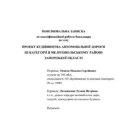 Проект будівництва автомобільної дороги ІІІ категорії в Мелітопольському районі Запорізької області