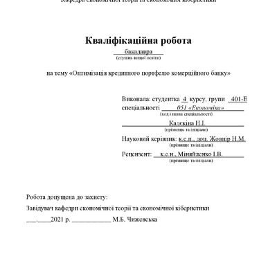 Оптимізація кредитного портфелю комерційного банку