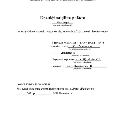 Математичні методи аналізу економічної діяльності підприємства