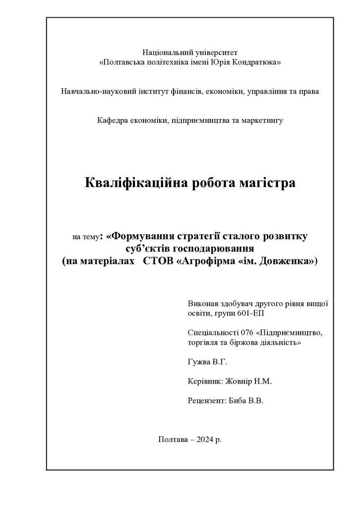 2024/04/26Формування стратегії сталого розвитку суб’єктів господарювання (на матеріалах СТОВ «Агрофірма «ім. Довженка»»)