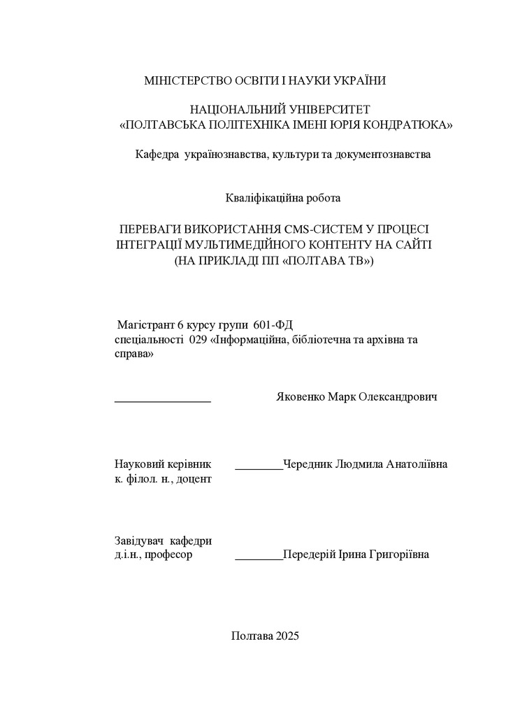 2025/02/17Переваги використання CMS-систем у процесі інтеграції мультимедійного контенту на сайті (на прикладі ПП «ПОЛТАВА ТВ»)