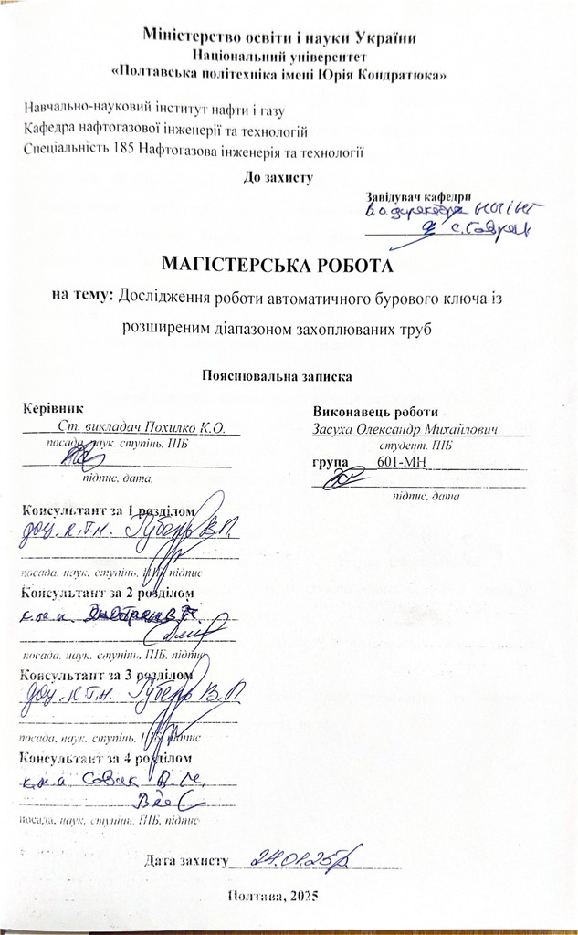 Дослідження роботи автоматичного бурового ключа із розширеним діапазоном захоплюваних труб