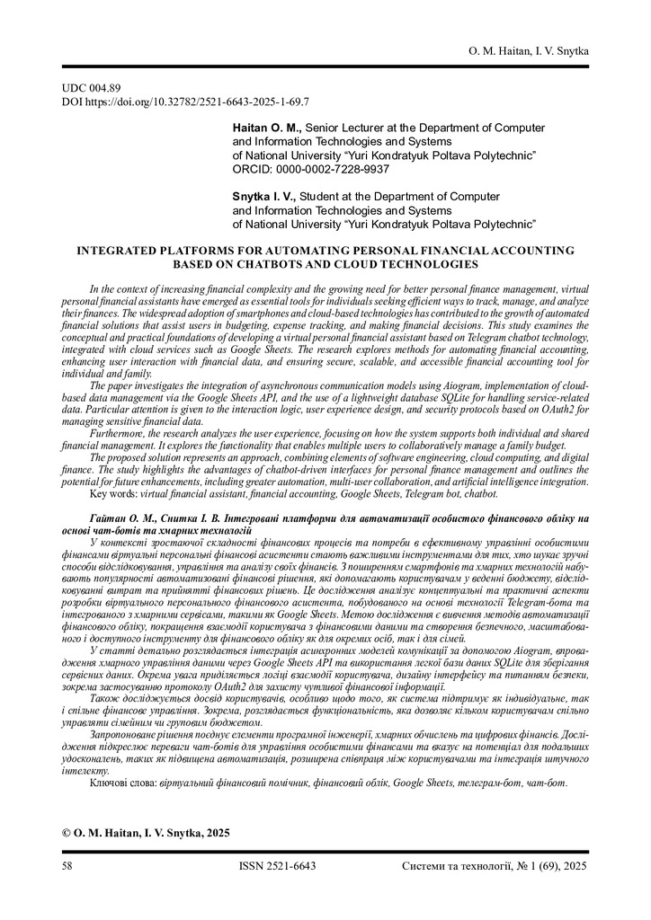 2025/12/03Integrated platforms for automating personal financial accounting based on chatbots and cloud technologies