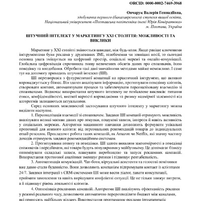 Штучний інтелект у маркетингу XXI століття: можливості та виклики