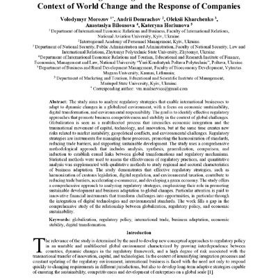 The study aims to analyze regulatory strategies that enable international businesses to adapt to dynamic changes in a globalized environment, with a focus on economic sustainability, digital transf...