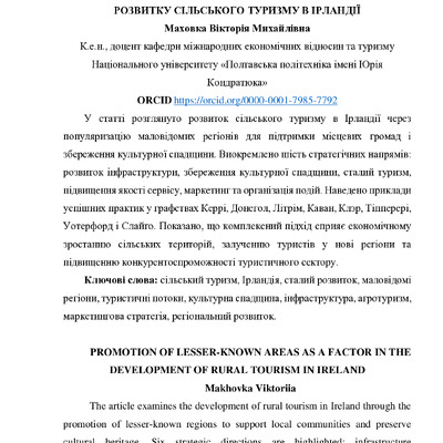 2025/12/09Популяризація маловідвідуваних територій як чинник розвитку сільського туризму в Ірландії