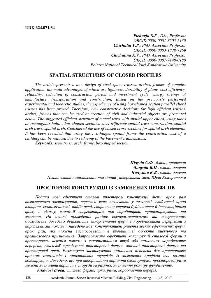 The article presents a new design of steel space trusses, arches, frames of complex application, ...