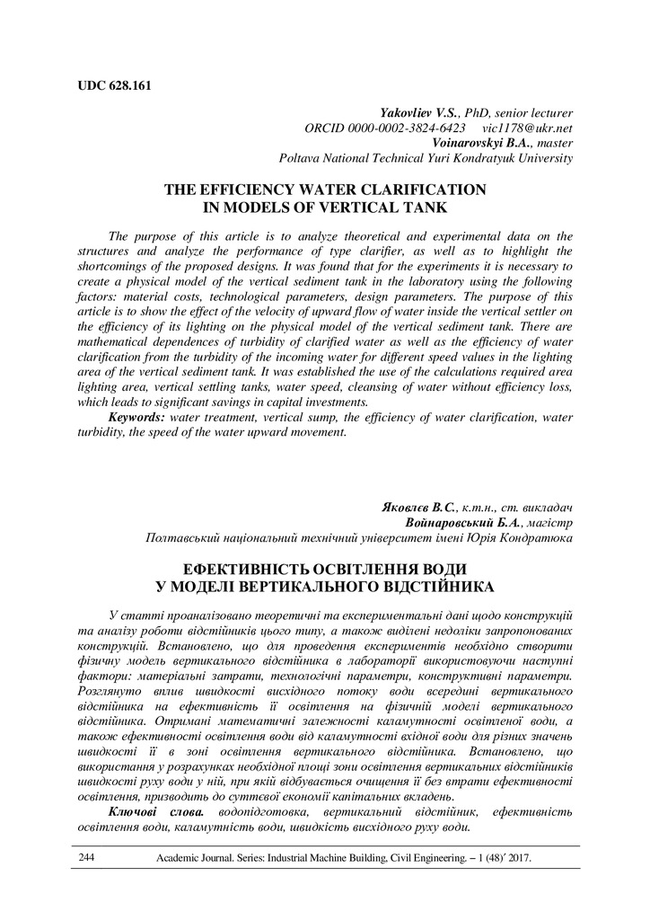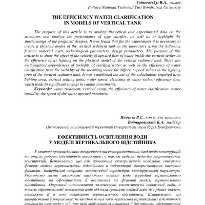 The efficiency water clarification in models of vertical tank