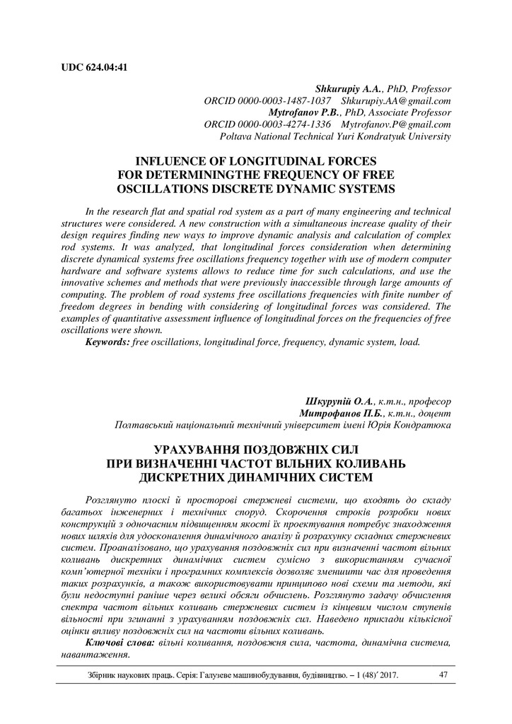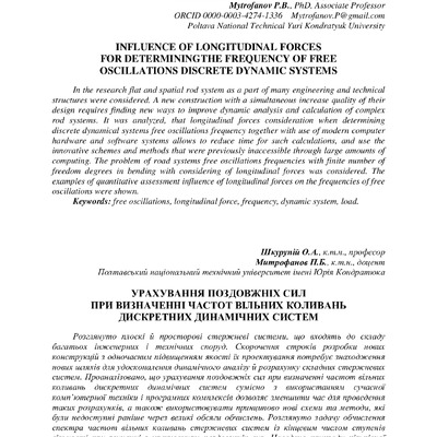 2017/09/29Influence of longitudinal forces for determining the frequency of free oscillations discrete dynamic systems