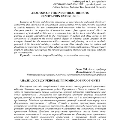 Examples of foreign and domestic experience of renovation the industrial objects are considered....