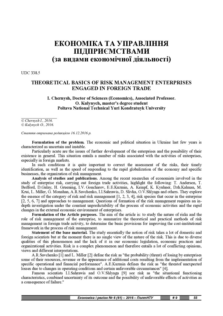 Theoretical Basics of risk management enterprises engaged in foreign trade