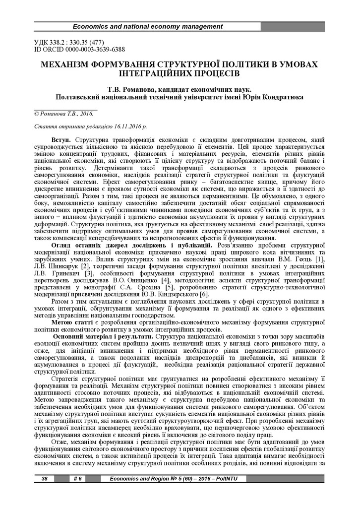 2017/07/06Механізм формування структурної політики в умовах інтеграційних процесів