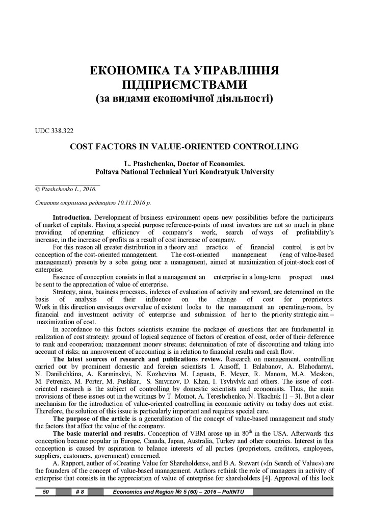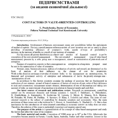 Dmitrenko Alla Vasilivna, PhD in Economics, docent department of Accounting and Auditing. O.Yakubova, student group 601-ЕОм. Poltava National Technical Yuri Kondratyuk University. Theoretical and m...