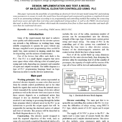 2017/12/19Design, implementation and test a model of an electrical elevator controlled using PLC
