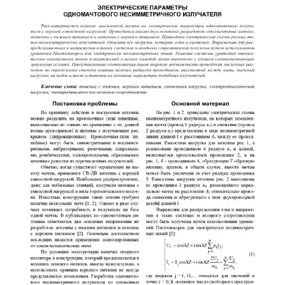 2017/12/20Электрические параметры одномачтового несимметричного излучателя