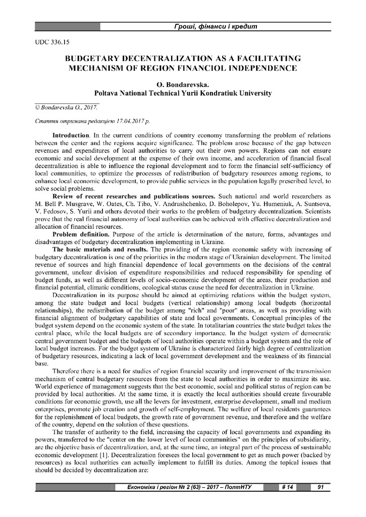 2017/12/10Budgetary decentralization as a facilitating mechanism of region financial independence