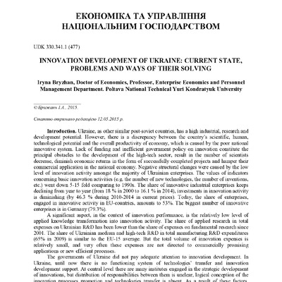 Innovation development of Ukraine: current state, problems and ways of their solving