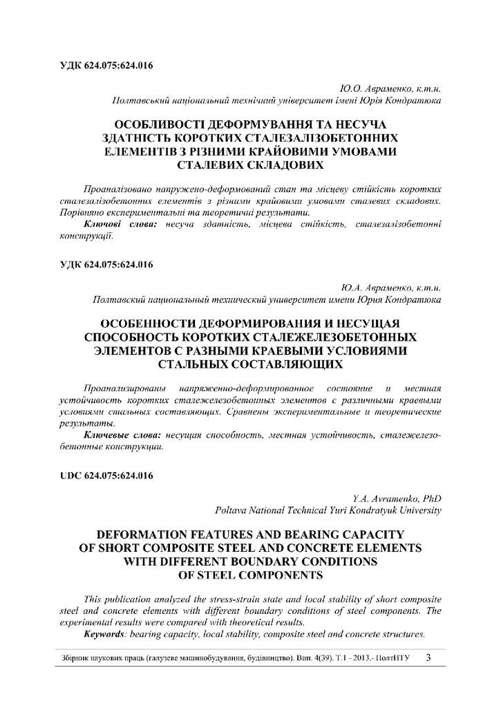 2018/05/30Особливості деформування та несуча здатність коротких сталезалізобетонних елементів з різними крайовими умовами сталевих складових
