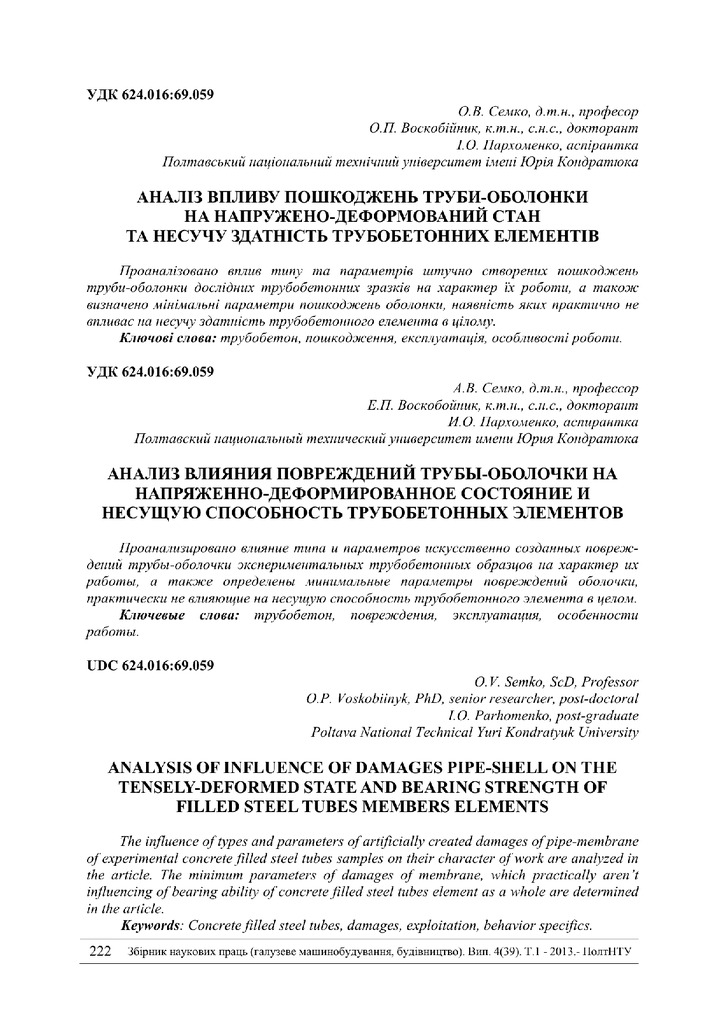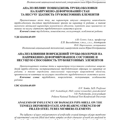2018/05/30Аналіз впливу пошкоджень труби-оболонки на напружено-деформований стан та несучу здатність трубобетонних елементів