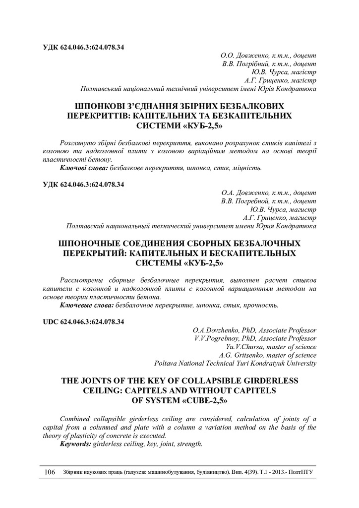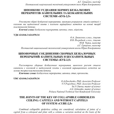 2018/05/30Шпонкові з’єднання збірних безбалкових перекриттів: капітельніх та безкапітельних системи "КУБ-2,5"