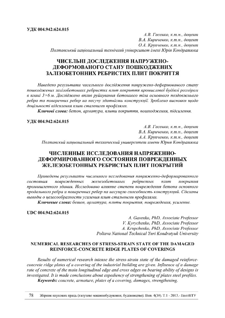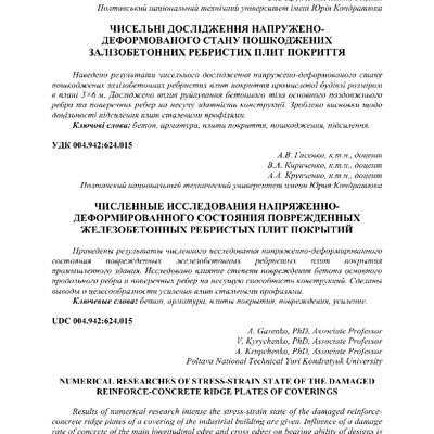 2018/05/30Чисельні дослідження напружено-деформованого стану пошкоджених залізобетонних ребристих плит покриття
