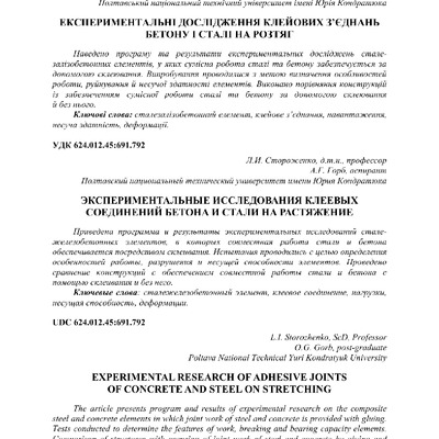 2019/02/19Експериментальні дослідження клейових з'єднань бетону і сталі на розтяг