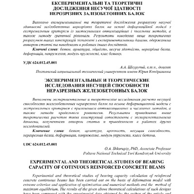 2019/02/19Експериментальні та теоретичні дослідження несучої здатності нерозрізних залізобетонних балок