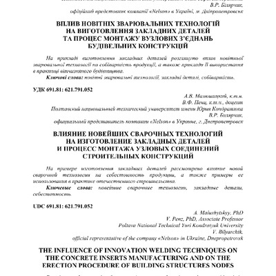 2018/05/30Вплив новітніх зварювальних технологій на виготовлення закладних деталей та процес монтажу вузлових з'єднань будівельних конструкцій