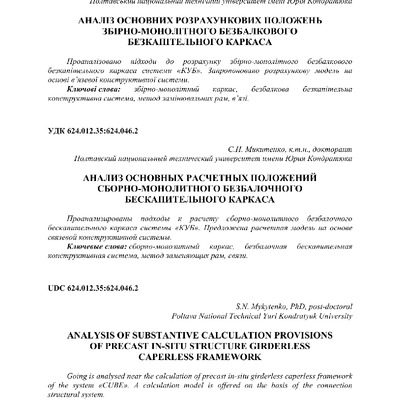 2019/02/18Аналіз основних розрахункових положень збірно-монолітного безбалкового безкапітельного каркаса