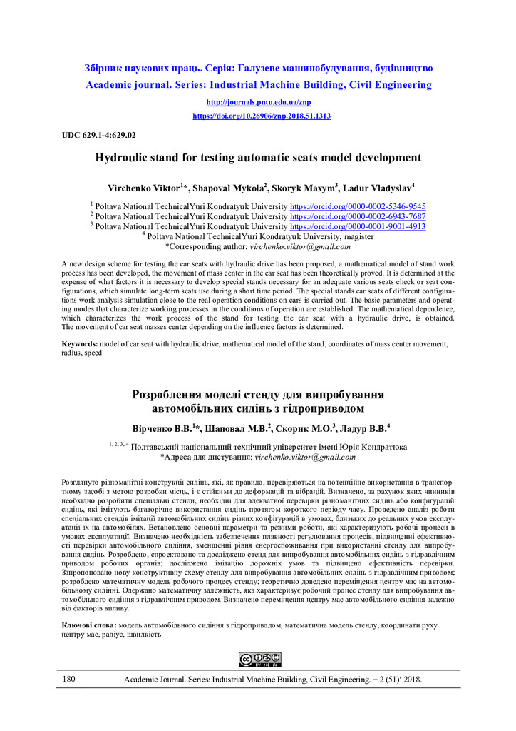 A new design scheme for testing the car seats with hydraulic drive has been proposed, a mathematical model of stand work process has been developed, the movement of mass center in the car seat has ...