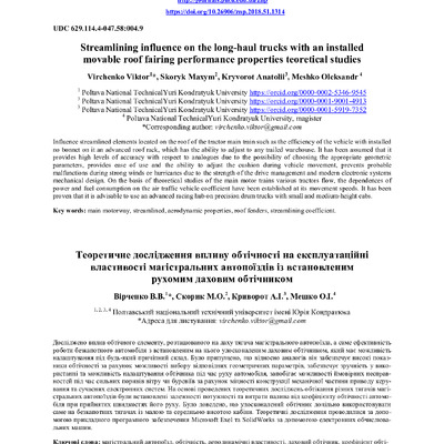 Streamlining influence on the long-haul trucks with an installed movable roof fairing performance properties teoretical studies